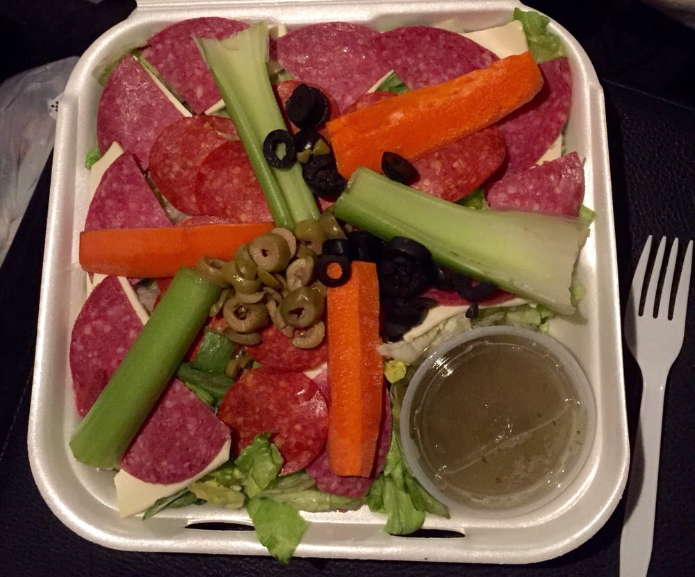 Crisp fresh lettuce covered with Provolone cheese, hard salami, celery sticks, and green and black olives.